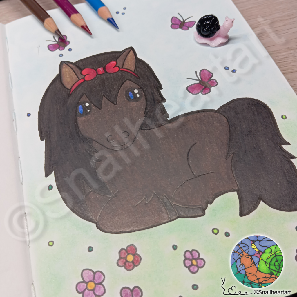 Kawaii Pferd „Friesenstute“ – Malvorlage zum Ausmalen